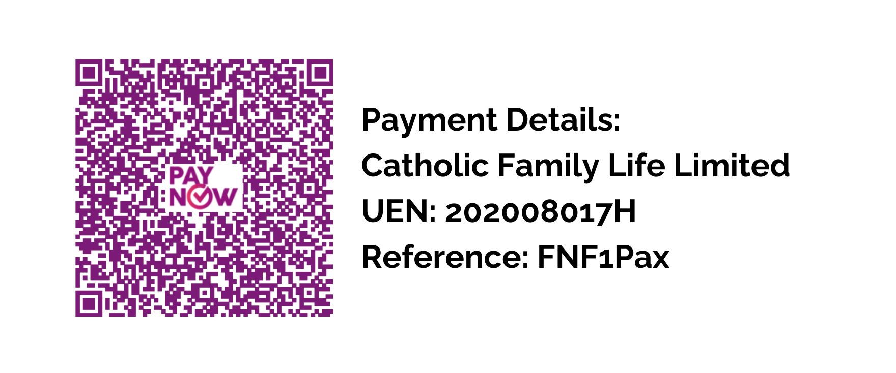 Type FNF1Pax or FNF2Pax in the unique reference code. - Attach screenshot of completed transfer with unique reference code with the registrant's full name and email to events@familylife.sg