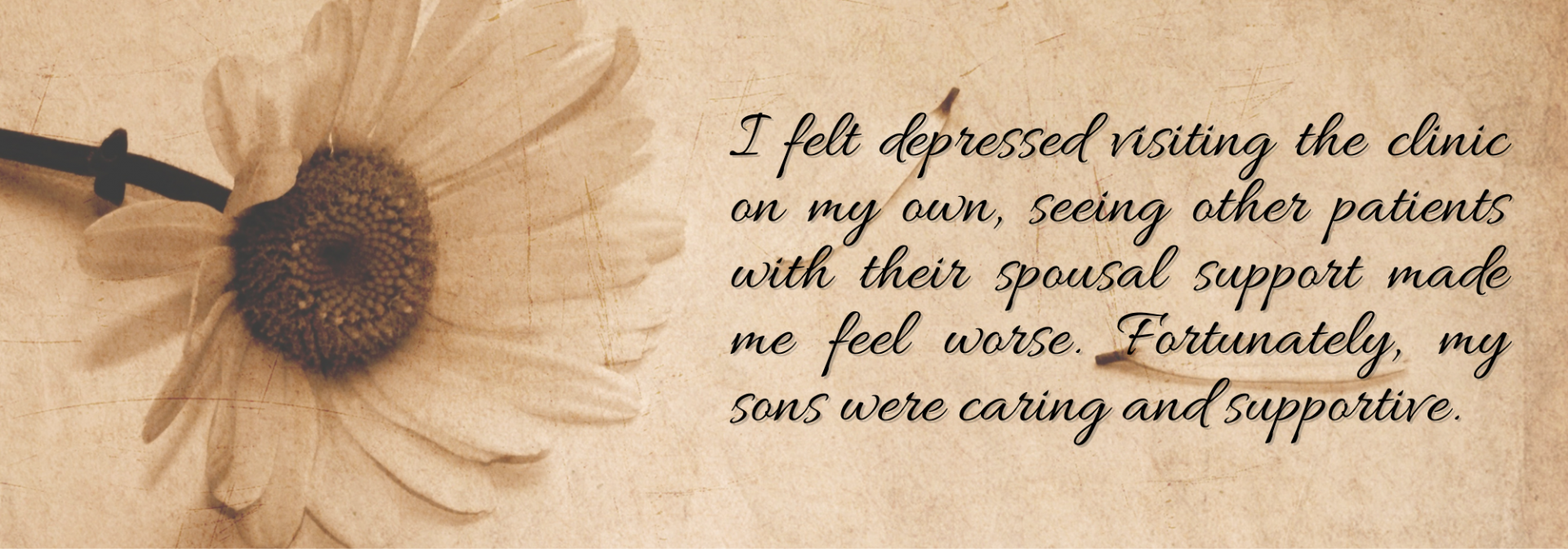 I was very apprehensive and nervous when I served the separation papers to my ex-spouse, I was devastated, angry and hurt as he had betrayed me several times; and had already left home to live with his girlfriend. I felt dejected and lonely and was not sure how I was going to cope without a partner. I was hoping that if I took that first step towards divorce, I could show him not to take me for granted all these years. Furthermore, I had breast cancer that same year and I was feeling at my lowest point because I had to cope with surgery recovery and visited the doctor on my own. I was worried, lonely and upset with what was happening in my life. I felt depressed visiting the clinic on my own, seeing other patients with their spousal support made me feel worse. Fortunately, my sons were caring and supportive. I felt stressed financially, having to cope on my own income to support the family.
